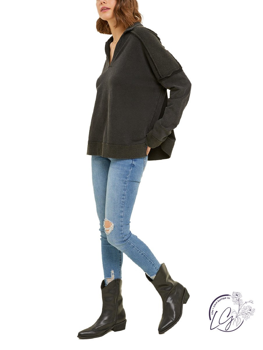 Perfect for both casual and transitional settings, this Vintage Washed French Terry Tee effortlessly pairs with your favorite denim, leggings, or casual bottoms. Whether you're lounging at home, running errands, or meeting friends for a casual outing, this top strikes the ideal balance between comfort and style, making it a versatile wardrobe essential with a distinctively retro vibe.