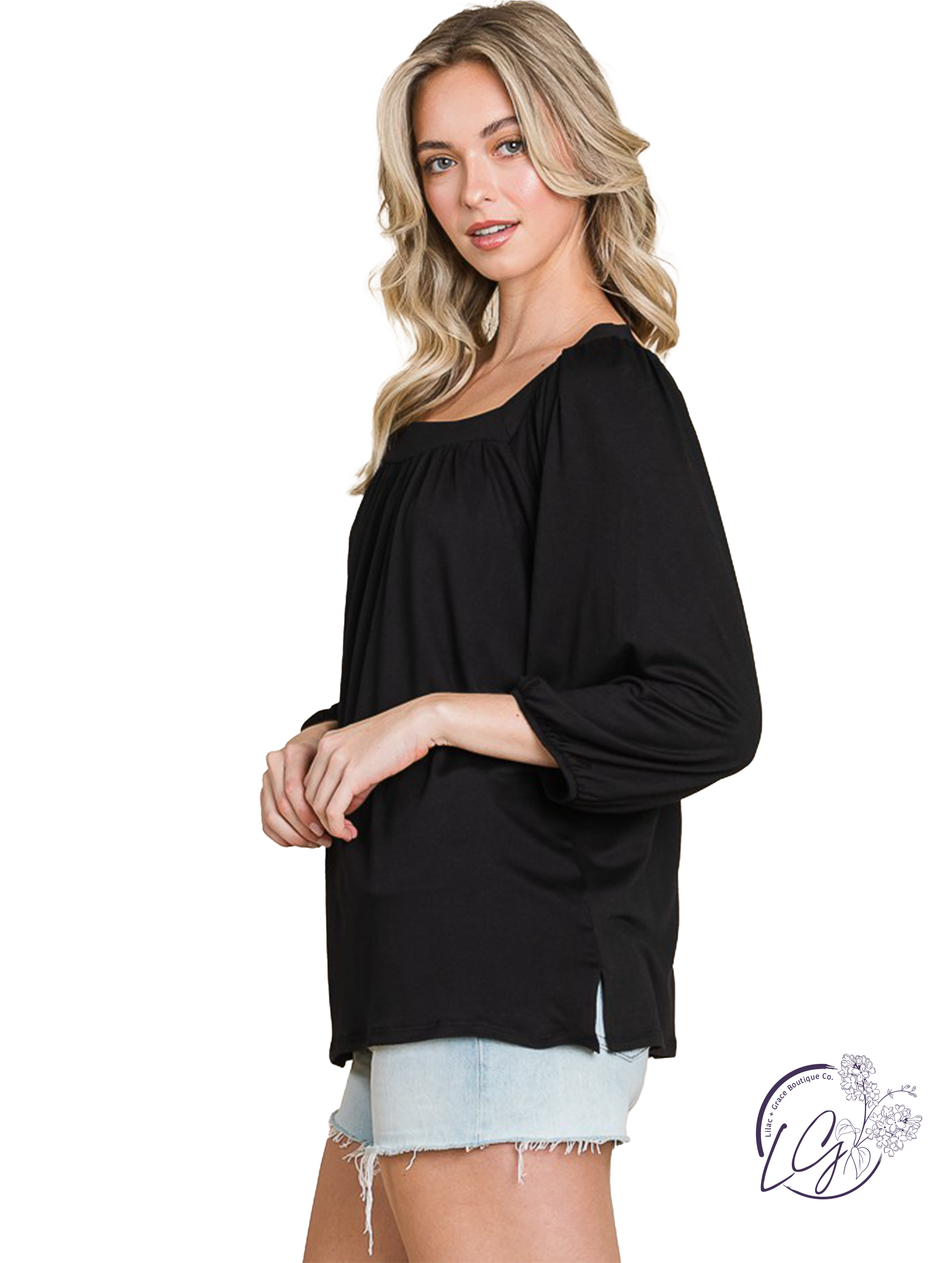 Elevate your style game with our We're Running Square Neck Flare Solid Top! The square neck adds a touch of elegance while the flare and relaxed fit provide comfort and movement. Made with 3/4 sleeves, this top is perfect for any occasion. Upgrade your wardrobe now!