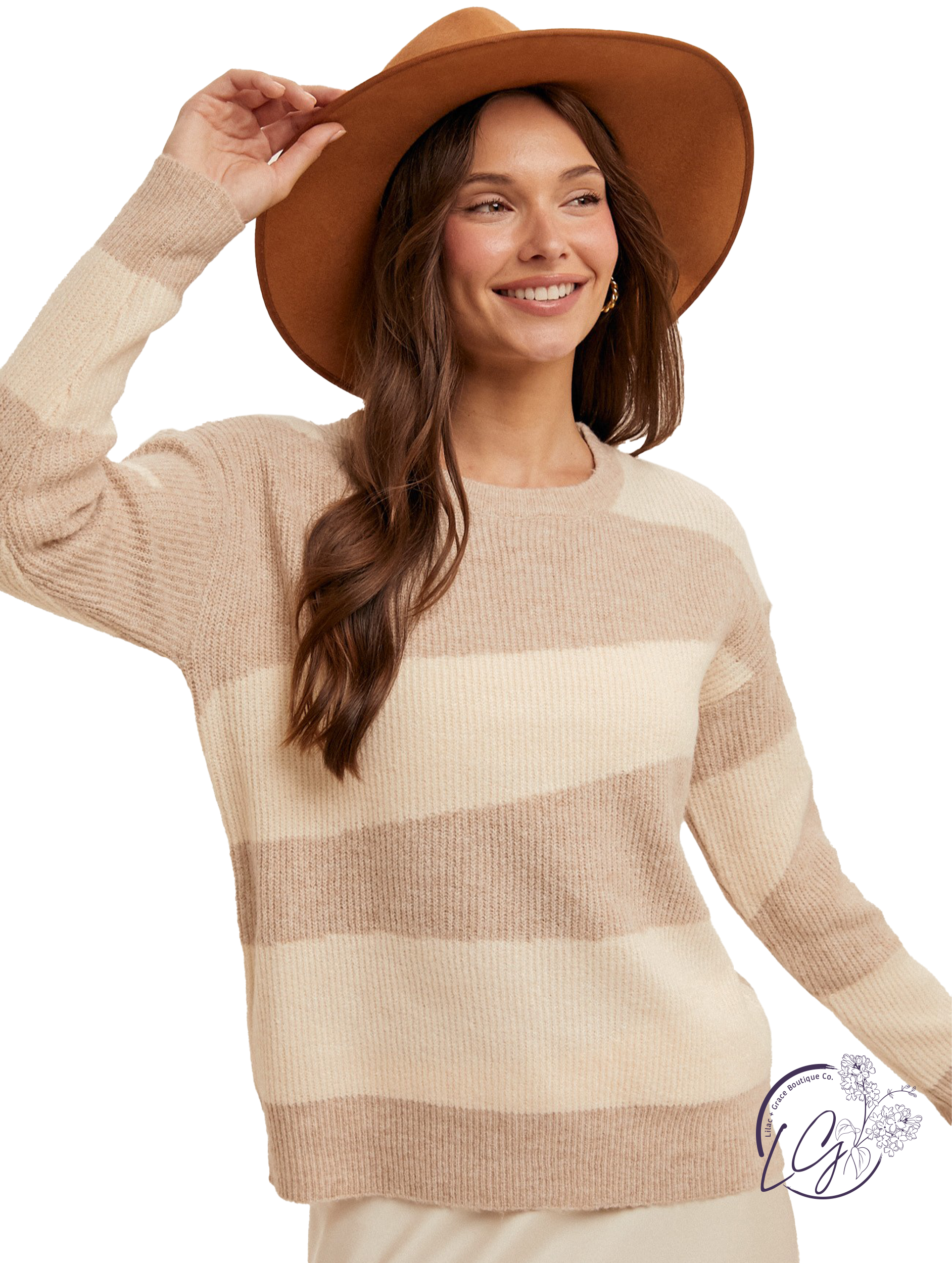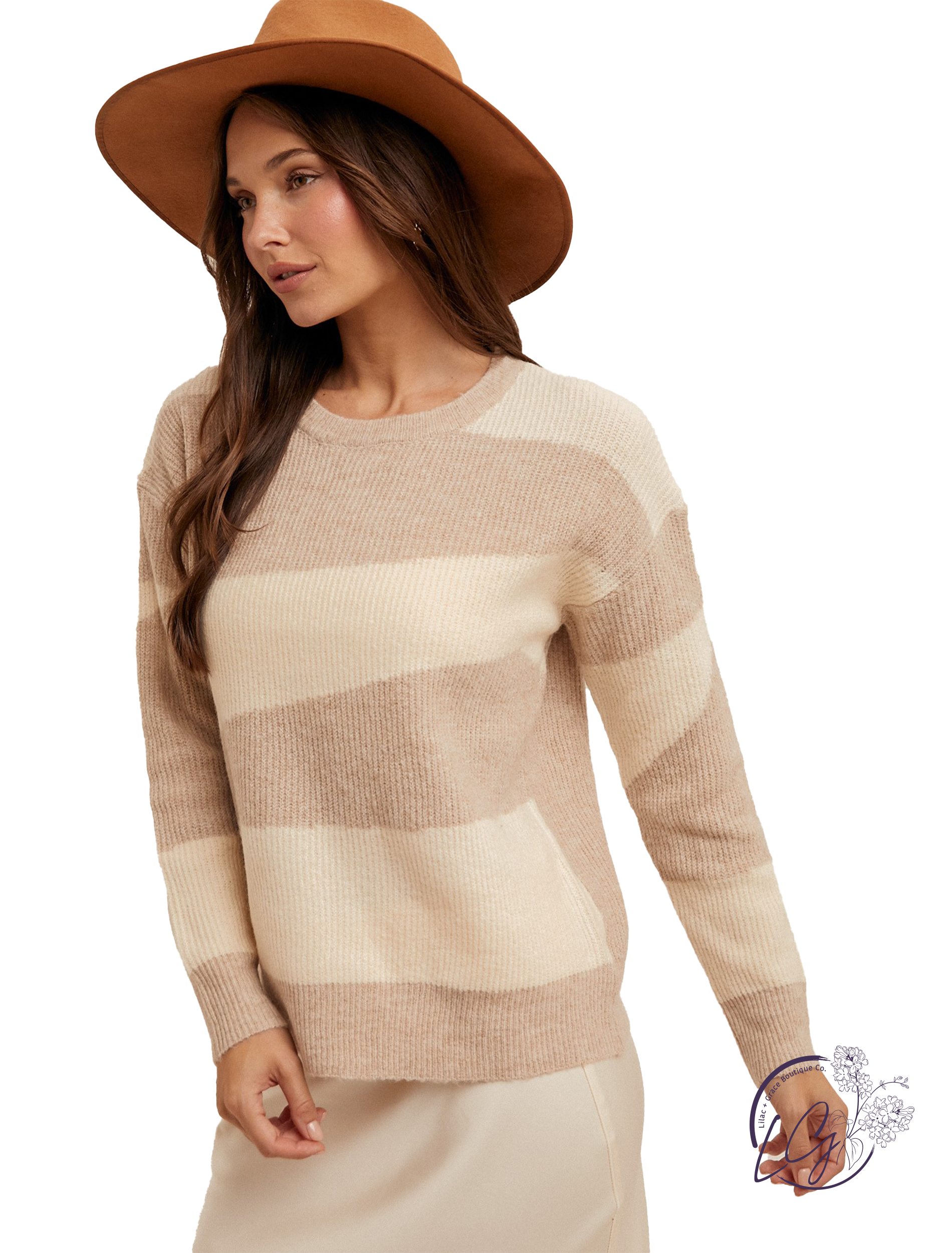 Conquer the cold with the What We Need Sweater. With its round neckline and color block design, this bold sweater will keep you warm while making a statement. Don't let the weather hold you back, take a risk and stand out in style!