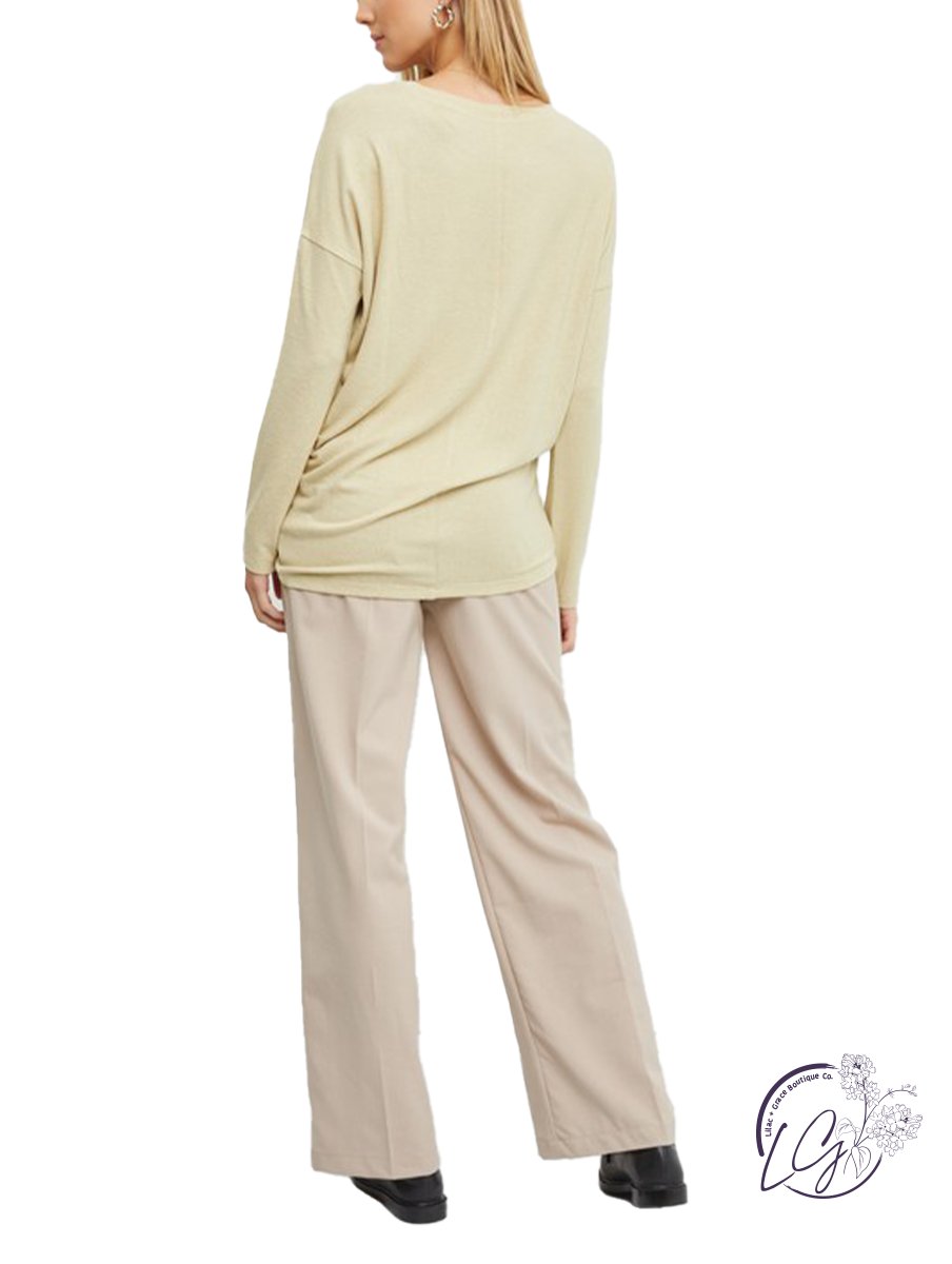 Introducing the Whispering Waves Boatneck Long Sleeve—a sublime fusion of comfort and style. Immerse yourself in the luxurious embrace of this ultra-soft knit top, designed to elevate your wardrobe with ease. The gracefully flattering boat neckline adds a touch of class, while the perfect flowy fit ensures both comfort and a chic silhouette.