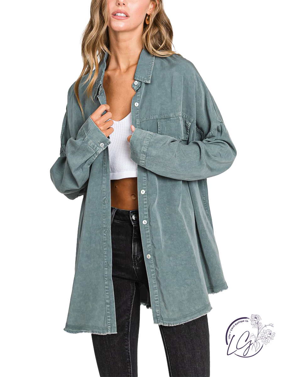Embrace the spirit of the untamed with our Wilderness Sage Mineral Wash LS Shirt. Crafted from the essence of nature, its sage green hue whispers of forest trails and tranquil meadows. Let the soft, mineral-washed fabric envelop you in comfort as you venture into the wild unknown. Adventure awaits with every button