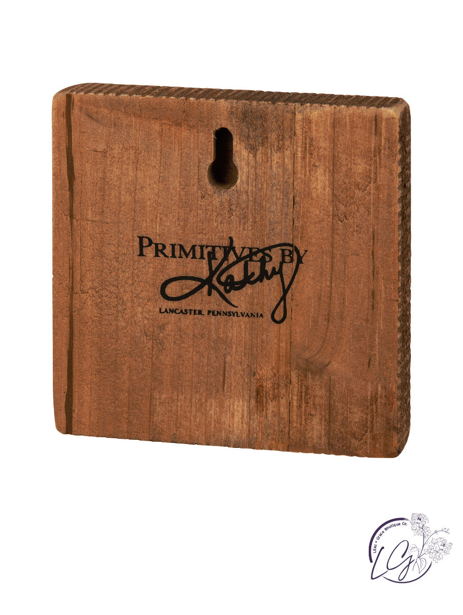 A wooden block sign featuring evergreen branch and pine cone design with "It's The Most Wonderful Time Of The Year" sentiment. Design is replicated from original artwork painted onto burlap canvas, giving the art a unique depth and texture. Easy to hang via predrilled keyhole slot or can free-stand alone.